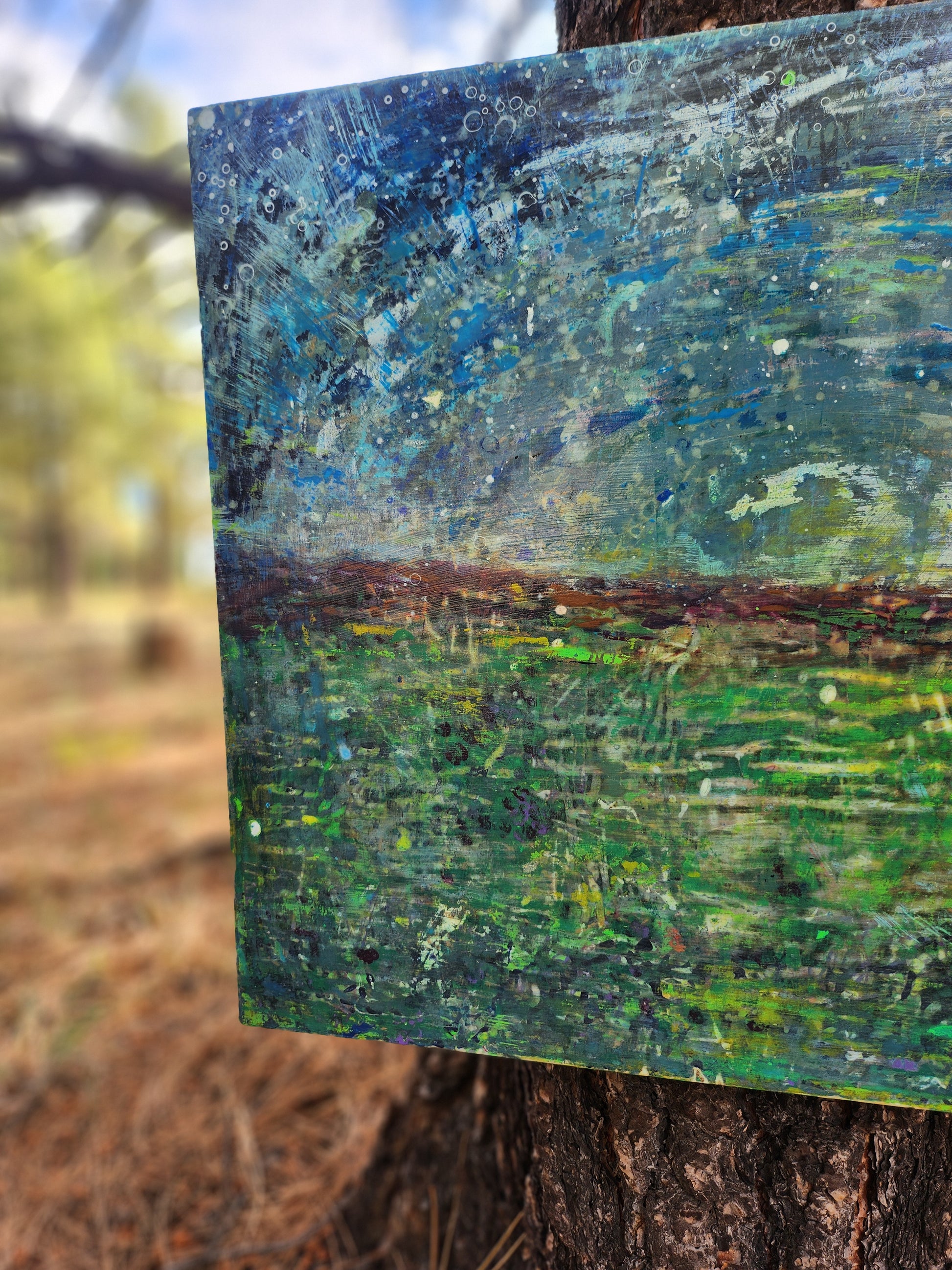 18X24 Mixed media Artwork on Wood Panel BLM Public Lands Abstract Expressionist Landscape Arizona Verde Valley Moonrise