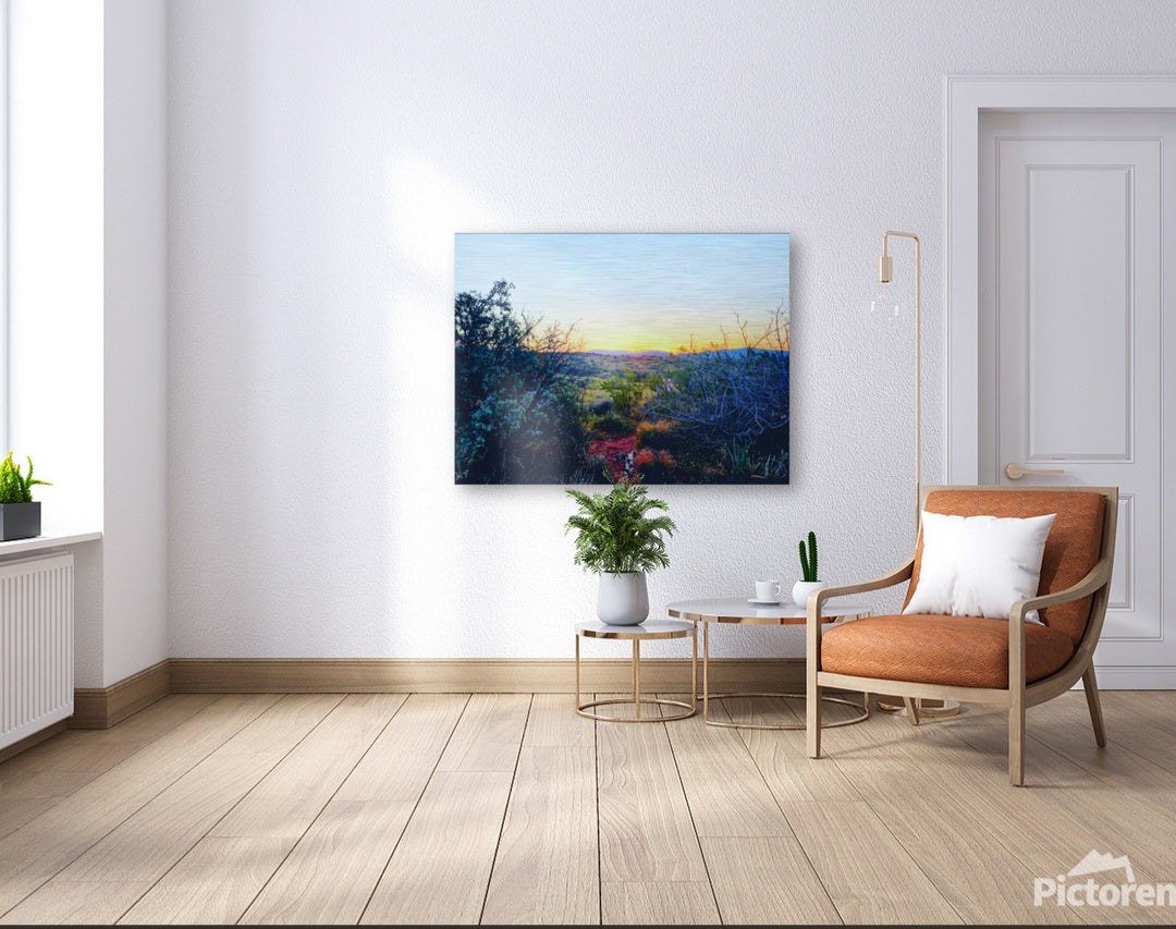5% of each sale donated to Public Lands. This photo was originally taken in the Arizona Verde Valley. It shows the hills of Cornville on the horizon at dusk as seen from my campsite on public lands.