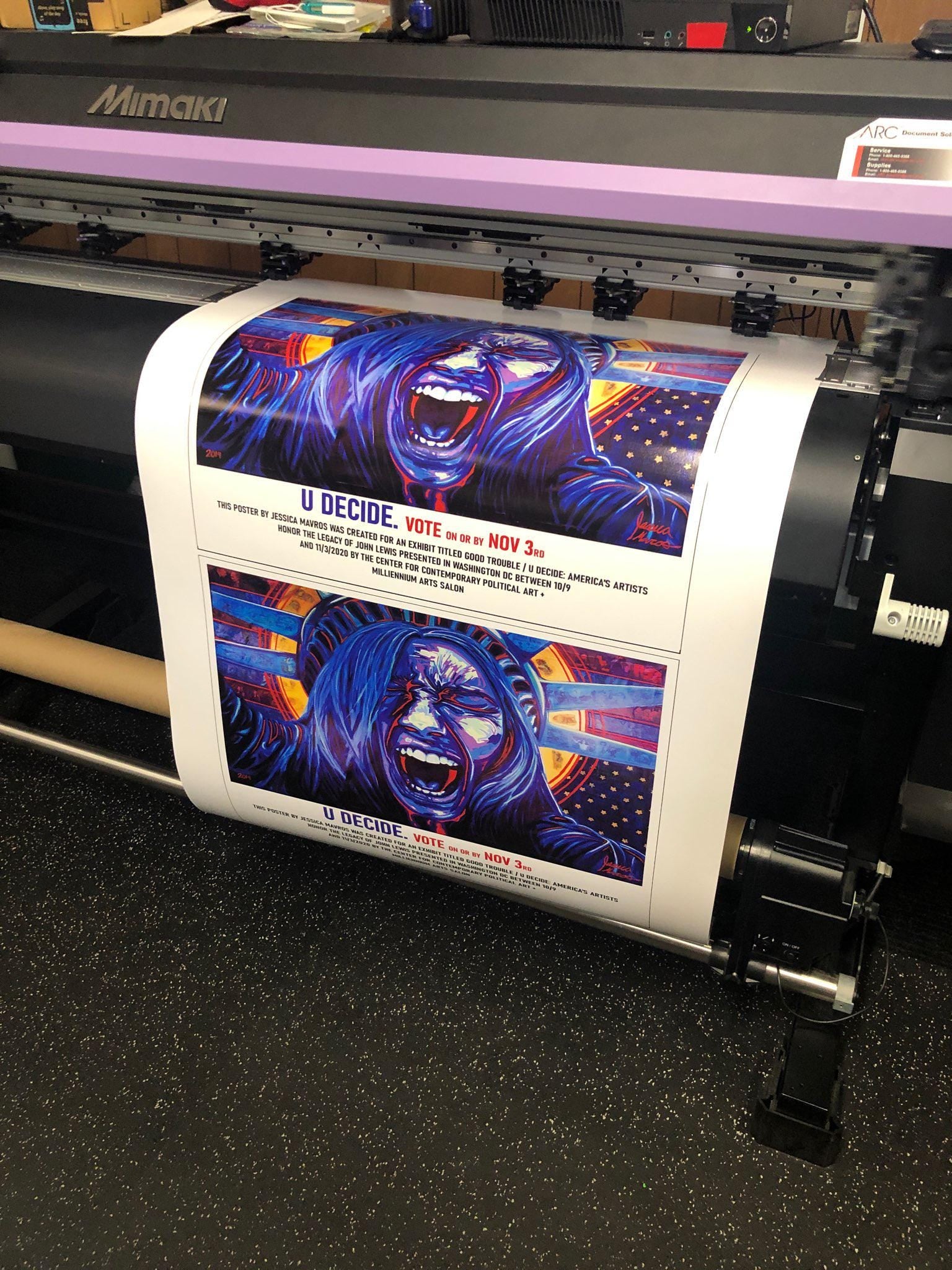 This is a very unique political poster created as a "get out the vote" effort for the 2020 election cycle. The art show was titled "Good Trouble " in honor of the late great senator John Lewis, known for his advocacy of social justice and civil disobedience of unjust law and duty to protest. It was a street art style poster art show hosted by The Center for Contemporary Political art in DC, and Robert Krauss (journalist for the Washington Post who survived the Jonestown Massacre). Participants and artists were encouraged to print these posters and display them in public spaces street art style as a form of "good trouble". Paste ups were displayed...illegally.. or.. willingly in windows and storefronts etc.
