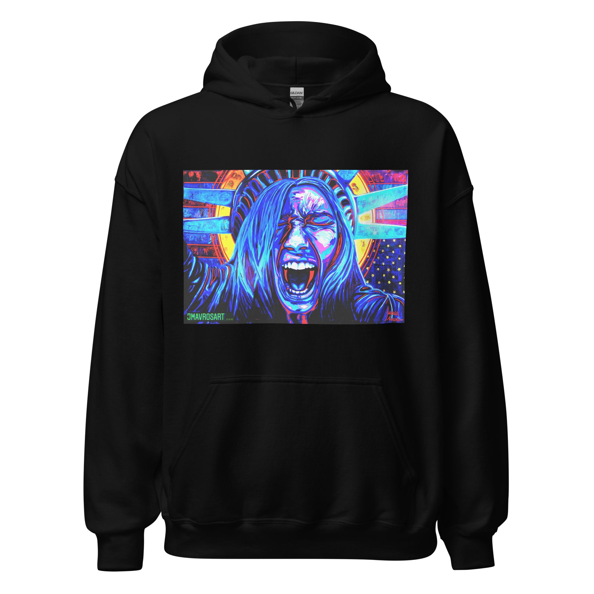 Screaming Lady Liberty Unisex Protest Hoodie|NO WORDS| Art as Protest Sweatshirt |Political Statement Hoodie |Anti-Fascism Art